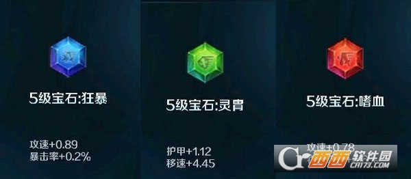 (1)在宝石的选择上,红色选择嗜血,毕竟是ADC,攻速很重要,同时嗜血提供的物理吸血,可以弥补玉兔在前期没有吸血装备时空缺。蓝色选择狂暴增加暴击几率!绿色选择灵胃增加最关键的移动速度!能不能跑的快就看绿色宝石选择的对不对!