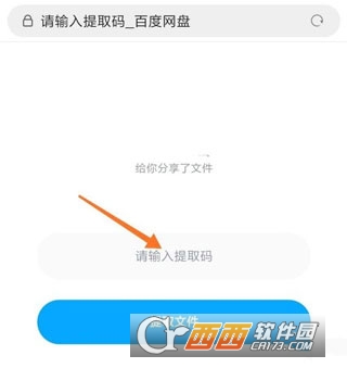 2、方框处输入百度网盘文件的提取码,点击下方箭头处的“提取文件”按钮。