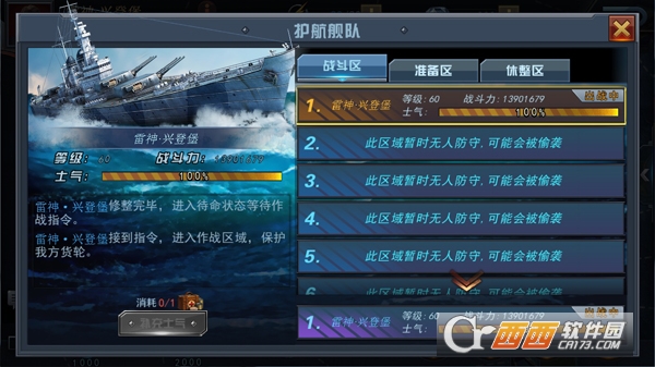 我们所需要做的,就是率领自己的舰队,守护在自己的运输货轮旁的作战区域进行“护航”,击退来犯之敌,守护己方货轮的资源。在作战时,要注意及时补充自己舰队的士气,如果士气消耗光,则会进入休整区进行休整。休整完毕才会重新进入准备区,随时准备出战。