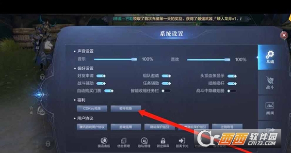 3、然后在系统设置界面,找到密令兑换按钮,点击这个按钮就可以输入自己获得的密令,再点击兑换按钮,就可以领取密令奖励了。