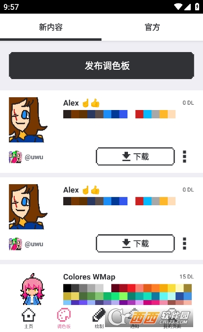 1、dotpict内置了数十种色彩供玩家使用,模仿现有的参考对象来创造属于自己的像素画