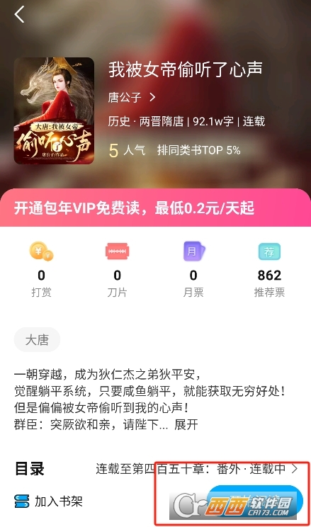 2、便捷书架管理:用户可将感兴趣的小说一键添加至个人书架,方便随时阅读。书架支持分类管理,用户可以根据小说类型、阅读进度等自定义分类,快速整理书架内容。还具备云端同步功能,无论在手机、平板等不同设备上登录,都能实时同步书架信息和阅读进度,实现无缝切换阅读,随时随地畅享阅读乐趣。