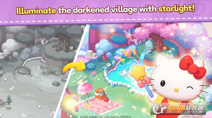 游戏中,“梦幻乐园”陷入了混乱,“村庄”也遭到了破坏,HelloKitty和她的三丽鸥朋友们为了让乐园和村庄恢复往日的美好,踏上了收集星星的旅程。玩家将扮演帮助者的角色,与HelloKitty等角色一起通过消除关卡来收集星星碎片。这些星星碎片可以用来点亮场景地图,解锁全新的装饰物,从而建设和装饰可爱的村庄,同时也有助于重建梦幻乐园。在这个过程中,玩家还能和三丽鸥角色们一起在梦幻乐园中探险,收集珍贵的回忆,制作专属相册。通过不断完成消除任务,玩家能助力HelloKitty和朋友们实现重建家园的目标,体验一段充满爱与温暖的冒险之旅。