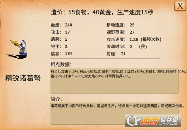 -核心优势:高防御(城墙血量高)、全面科技与经济优势,特色兵种诸葛弩输出稳定。