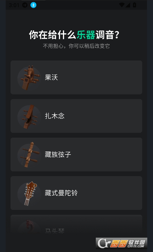 1、打开雪怪调音器app,首先选择自己要调音的乐器