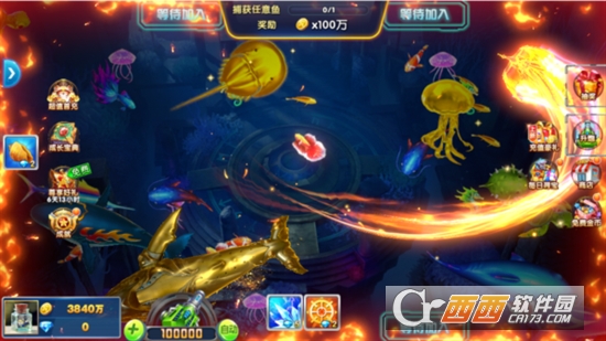 冒险与解锁功能,跟随“捕鱼冒险之旅”主线,完成指定竞技任务推进进度,解锁不同主题渔场;在冒险过程中,可收集道具解锁特殊技能(如“全屏轰炸”“锁定目标”),技能在竞技关键时刻使用,能快速逆转局势,提升竞技胜率。