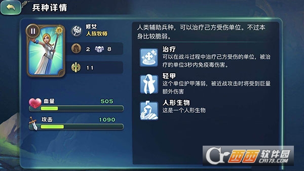 1、人族是剑与家园目前版本中唯一有加血部队的种族:牧师。打开我们的大教堂查看牧师兵种的特性。