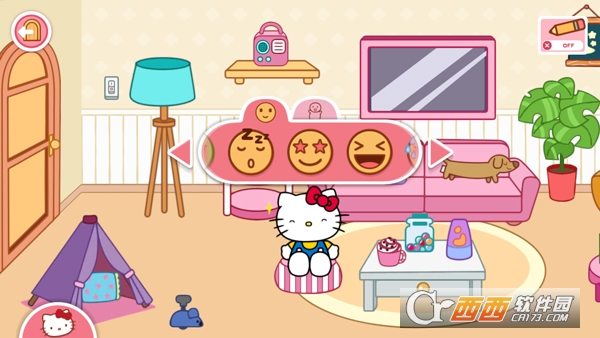 4、点击凯蒂猫,玩家可以让她做动作和变换表情;