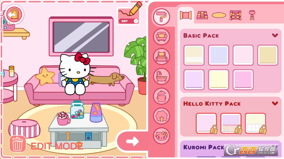 5、点击右下角凯蒂猫按钮,玩家还可以添加其他三丽鸥角色;