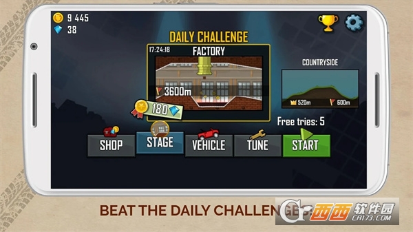 游戏中要面对许多登山过程中会遭遇的独特挑战,从大胆设计的关卡中获得奖励,收集金币升级你的车。赶紧来试试吧。