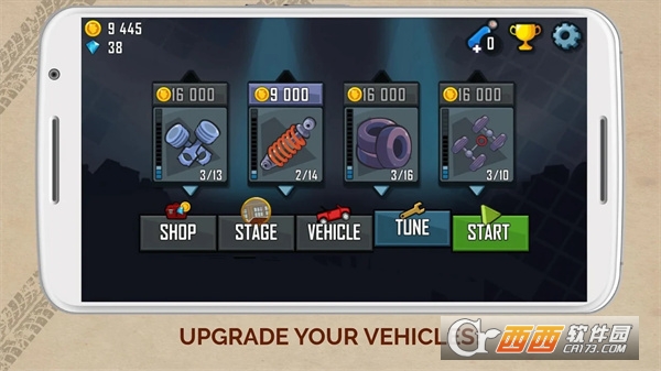 经过一段时间的游戏后,你的金币慢慢的可以满足你去升级自己的汽车时。首先升级你的轮胎或提高发动机其次是前悬架和四轮驱动,升级发动机到3级左右,然后慢慢的把其他几项也都提升到3级左右。这将更好的提升自己车辆的整体实力,不至于因为车辆的速度太快而经常翻车。