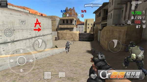 游戏的整体感觉与CS相似,说是手游版CS应该不为过。游戏中玩家可以选择扮演恐怖分子或是反恐部队的一员,两方中可供选择的角色各有六名,游戏中可选地图数量也不算少,喜欢玩CS的玩家不应该错过。