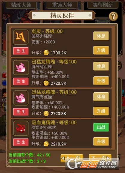 11、你随身携带的精灵可以给你增加攻击、暴击、攻速等属性,各种类型的精灵多达20种!