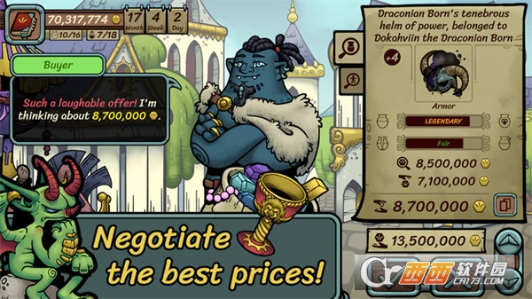 帝国境内十余座城镇各有特色:矿石重镇注重等价交换,手工艺之城更看重交易诚意,每座城镇的物资与交易规则都需灵活适应。游戏内置随机事件系统,可能触发"稀有物品上门""政策调整影响物价"等突发情况,考验你的应急决策能力。此外,定期开放的节日拍卖专场与委托任务,可产出专属传奇物品与技能加成。