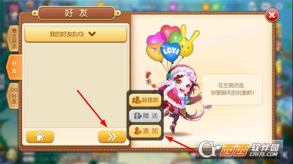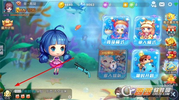 1、打开弹弹堂手游进入游戏主界面,点击左下角的好友图标,进入好友相关界面。