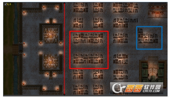 此关为秦用死劫关。我军只能在民居上行走,每第一次进一个民居都会在附近民居上触发强行的刺客,刺客到达红线就会触发一波伏兵,包括两个步兵两个枪兵两个弓兵。蓝框处超过三人会触发两个强行的刺客。如果同时触发4波或以上的伏兵秦用会触发中伏剧情,14回合若未主动进瓮城会自动触发中伏剧情。所以本关关键在于尽可能的在不触发新刺客的前提下清刺客。建议出战张紫嫣尚怀忠(有罗松的上罗松),有窦线娘的玩家窦线娘必出站,没羽箭攻击可以打到相邻的民居,很好用,张紫嫣加好强行。如果已经触发伏兵可在红框内民居清完伏兵再分兵上下清刺客。可以大部队在红线附近守株待兔,让跑得快的人去踩雷,把刺客都踩出来。清完刺客后进瓮城触发瓮城内敌军,程咬金到达城门附近时徐茂公出现。徐茂公对话秦琼后徐茂公才会触发撤退。秦用学特技条件:红线以左无敌军(井栏也要杀),秦用在瓮城内。只要挡住门口,清掉井栏即可。二周目全灭过关奖励秦用成长点,有皮肤再额外奖励两点。