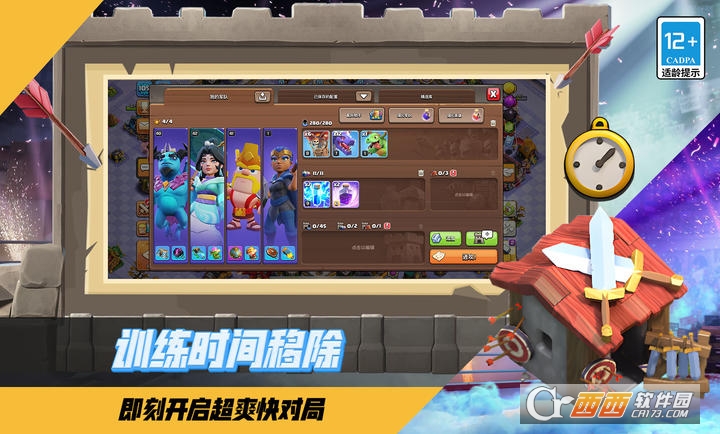 -搭配不同的兵种、法术和英雄,尝试各种独特的战术;