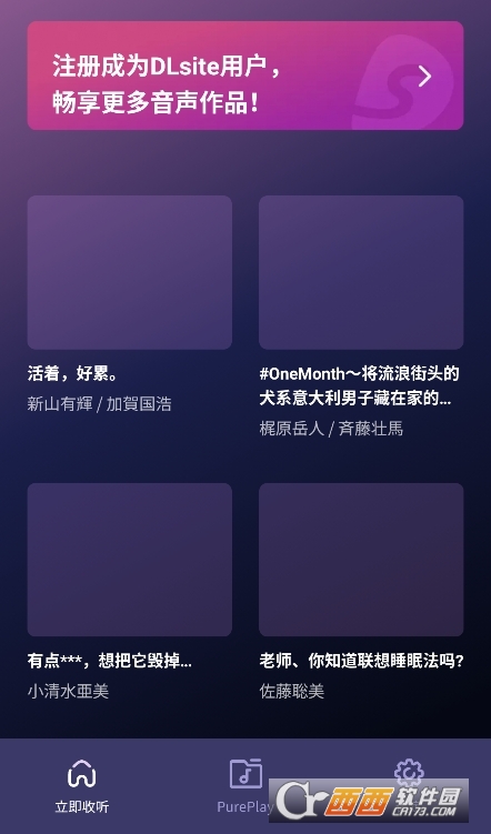 DLsite.Sound2026最新版是一款优秀的音频软件,提供丰富的有声小说以及精彩的音频播放器,打造优质的音频播放功能,提供专业且丰富的趣味音频内容,支持倍速调整以及音频目录选择等等,非常受欢迎,感兴趣的小伙伴们欢迎来下载试试吧。
