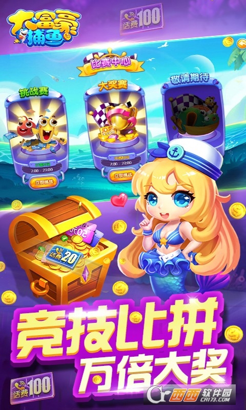 当玩家捕获的奖金鱼和特殊鱼达到一定数量时,就可以获得开启宝藏的机会,随机获得大量的金币、钻石或道具。
