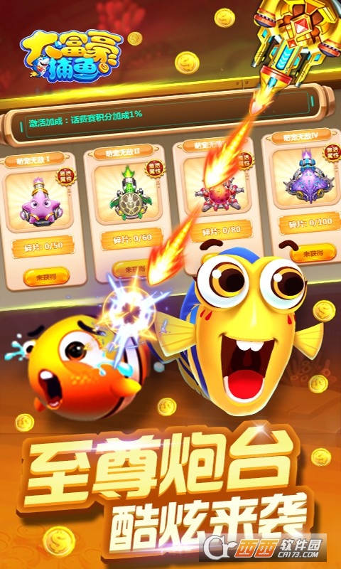 2、炮台升级:玩家可以通过消耗强化石来升级自己的炮台,提高捕获效率。如果强化石不足,也可以直接使用钻石代替。炮台倍率从10倍到700倍不等,最高可达1000倍。