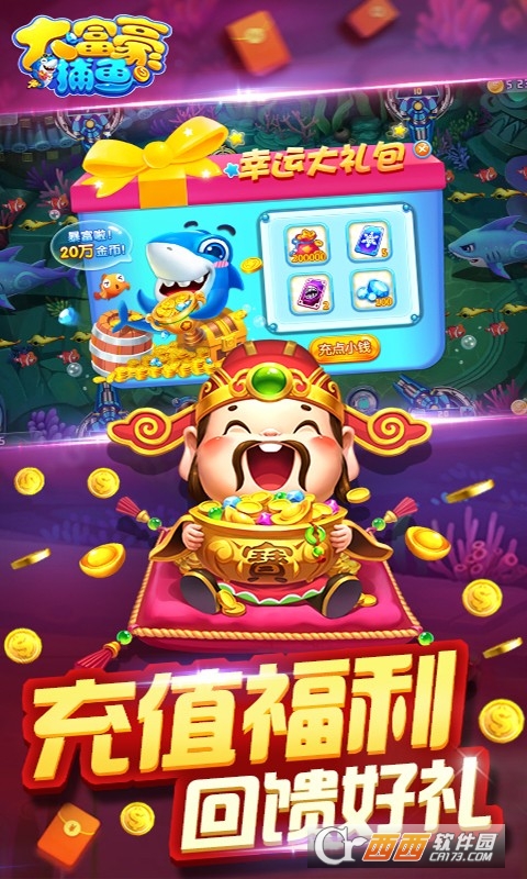 2、福利充足实用,玩家获得感强。每日免费送闪电、狂暴、分身三种技能卡,还为新手准备百万金币、大量钻石;超值礼包每天可领取,奖励涵盖游戏必备资源;无需完成复杂任务,登录、签到即可获取福利,福利丰富度远超福利稀缺的普通捕鱼游戏。