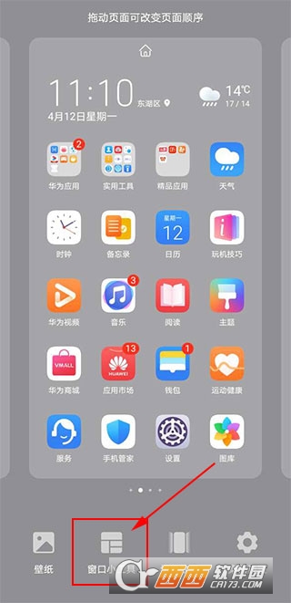 1、在桌面上双指向中间滑动,窗口小工具;