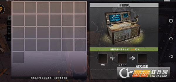 它和研发台有相辅相成的作用,我们用研发台解锁了不同等级的物品装备,这时候就需要绘制台来制作学习研究配方(这里小编来和大家简略介绍一下它是怎么来消耗绘制的。假如我们在路边敲到一件骨甲衣服,我们拿去绘制台去学习绘制就要消耗一件它这样原有的装备才得以制作出配方)。