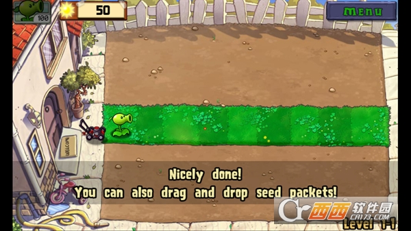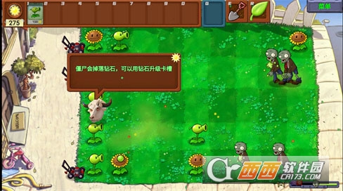 6、按照僵尸行进的路径,在路径旁边种植植物,按照图中的安排可以顺利通过第一波僵尸。
