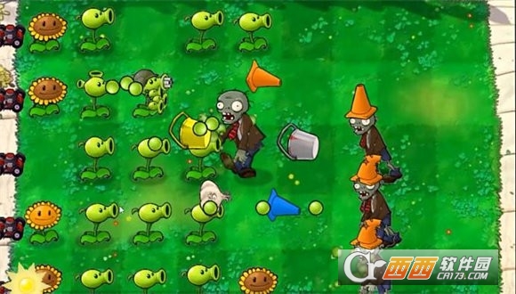 针对地面普通僵尸:豌豆射手、双重射手或寒冰射手(控制速度)。