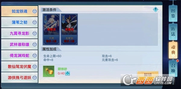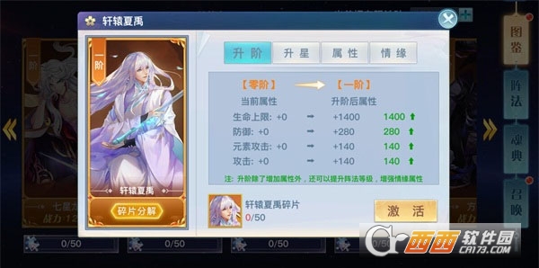 在图鉴界面中,玩家们能看到目前所收集的所有兵魂伙伴,点击卡片即可进入兵魂的养成界面,在这里可以消耗碎片对兵魂人物进行激活、升星,消耗陨铁砂可对兵魂伙伴进行升阶。