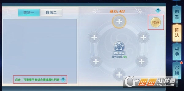 接下来就到了上阵界面~这里我们选择兵魂伙伴上阵出战,上阵伙伴可以提升主角战斗力。而左边那两个切换阵容开启后玩家就可以更快捷的切换出战阵容,打起架来方便的不要不要的。右边可以直接看到上阵兵魂伙伴后获得的属性和战力加成。对于萌新玩家,只要点击推荐按钮就可以看到适合你的阵容搭配哦。