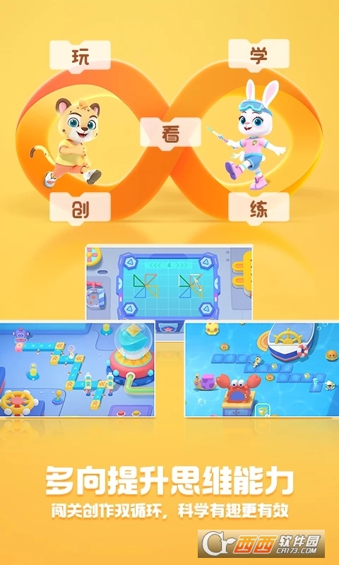 1、精美的动画和丰富多样的创作流派,让儿童通过愉快的互动,了解编程知识,学会提高思考和解决问题的能力,帮助他们轻松走上编程启蒙的道路