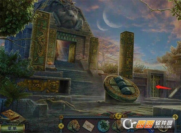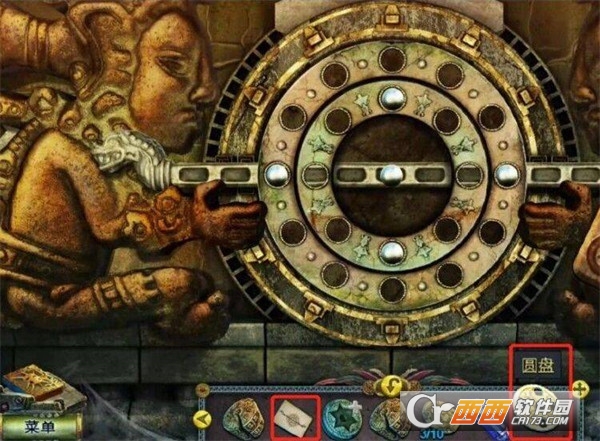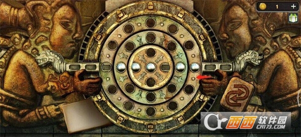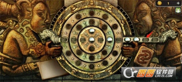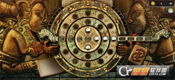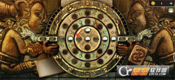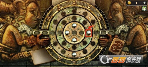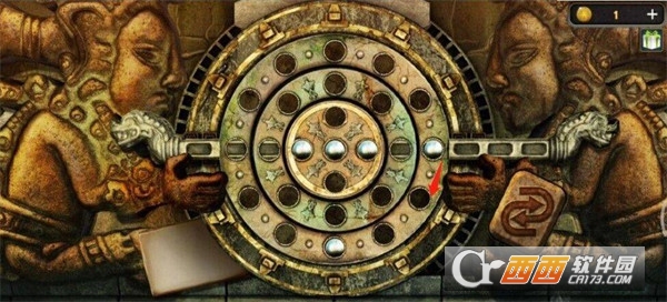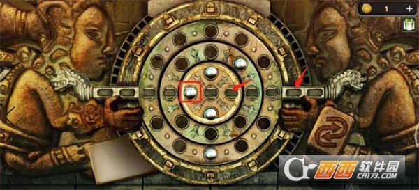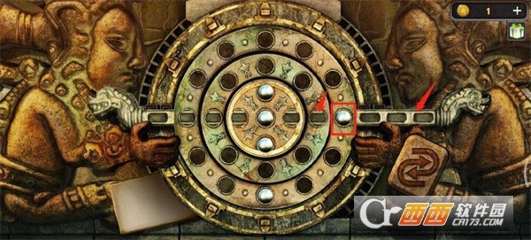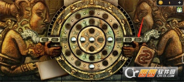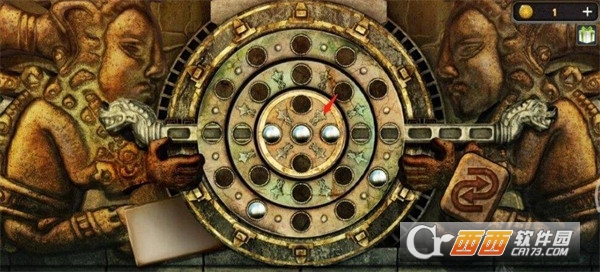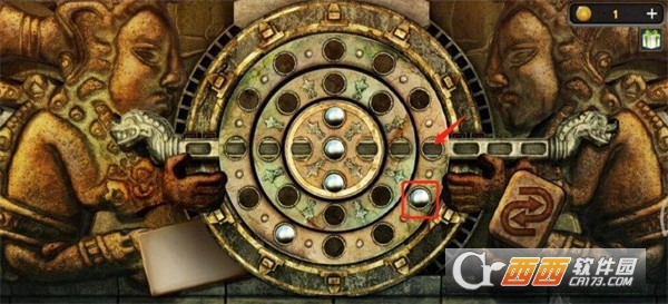 这里玩家需要根据大门左边的浮雕提示,来改变石板上的圆点位置。具体的位置最后应该像如图的红色方框里的圆点排布。还是相当简单的,完成之后就能启动大门。