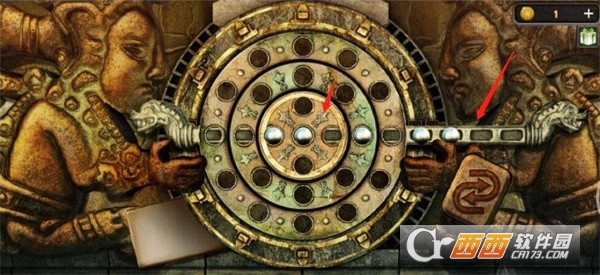 15、移完后,再将横杆往左推两格,推完后转圆盘的小游戏就通过了。