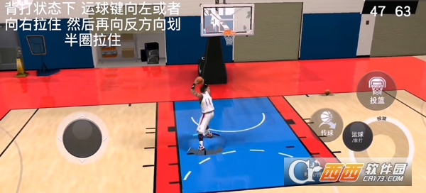 5、梦幻舞步,背打状态下,运球键向左或者向右拉住,然后再向反方向划半圈拉住。
