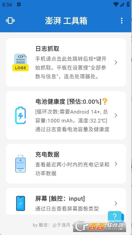 在数据监测层面,澎湃工具箱的表现十分亮眼。它支持日志抓取功能,能快速记录并导出手机运行过程中的各类日志信息,方便用户排查系统异常、分析应用故障;内置的电池健康度检测工具,可直观呈现电池当前损耗状态、循环次数等关键数据,让你随时掌握电池 “健康情况”,提前做好更换准备;而充电数据追踪功能,则会实时监测充电电压、电流、充电时长等参数,帮你了解充电效率,规避不当充电对电池的损害。