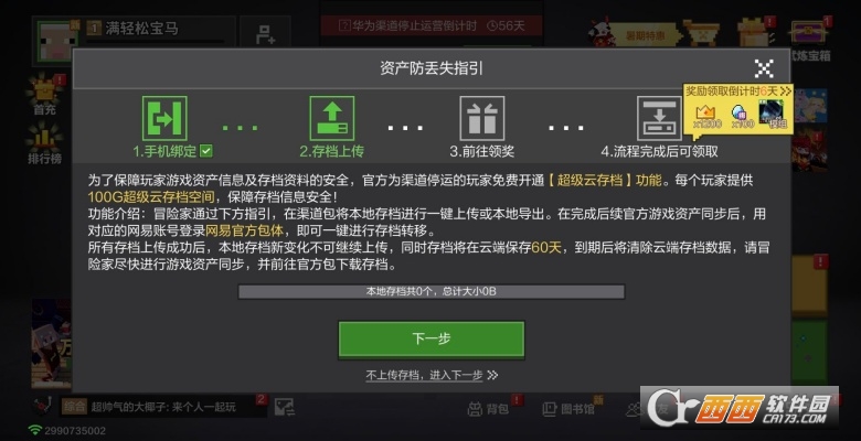 1、为了保障玩家游戏资产信息及存档资料的安全,游戏官方为渠道停运的玩家免费开通[超级云存档]功能。每个玩家提供100G超级云存档空间,保障存档信息安全