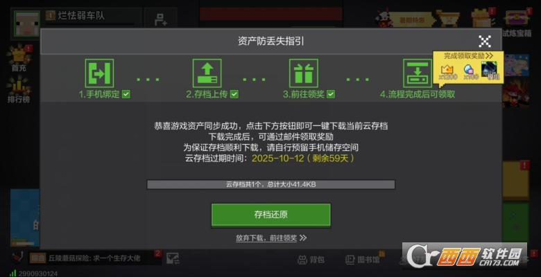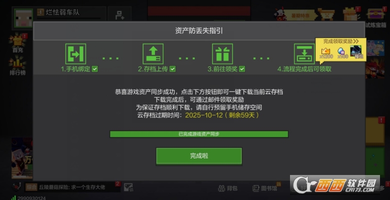 3、所有存档上传成功后,本地存档新变化不可继续上传,同时存档将在云端保存60天,到期后将清除云端存档数据,请冒险家尽快进行游戏资产同步,并点击页面下方游戏官服下载存档