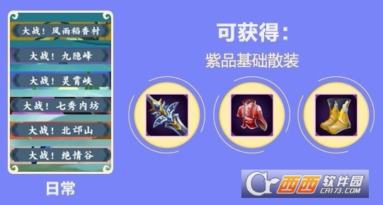 九隐峰、灵霄峡、北邙山、绝情谷……众多日常副本等待着少侠们前去挑战,历练的同时还有紫品基础散装掉落~
